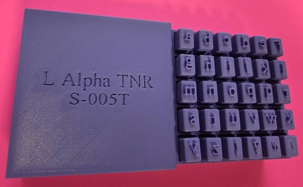 30-piece sets in lower case letters includes 4 special character stamps. All enclosed in a protective case. Choose between Script (S), Times New Roman (T), or Comic Sans (CS) font. Please select above.